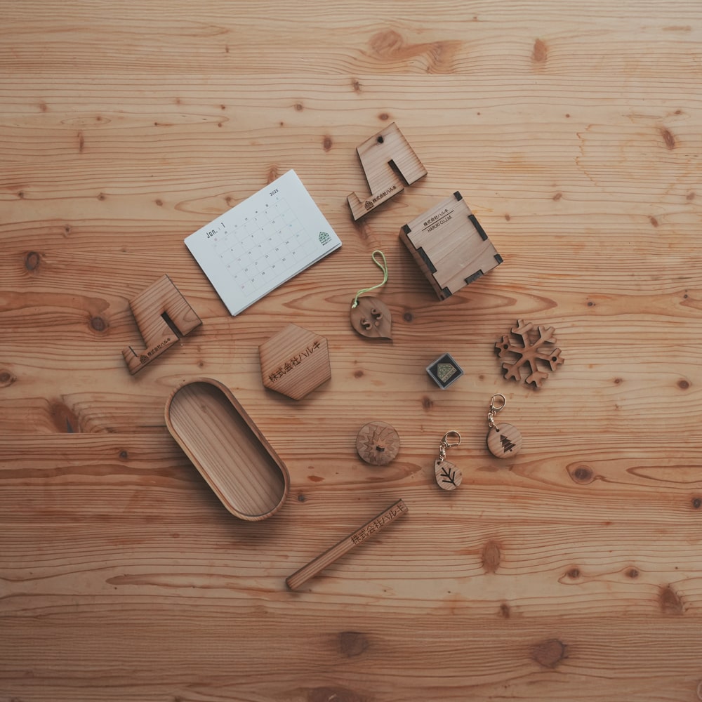 その恵みを余すことなく活かして生まれたのが、北海道産の杉を使用したオリジナルノベルティです。